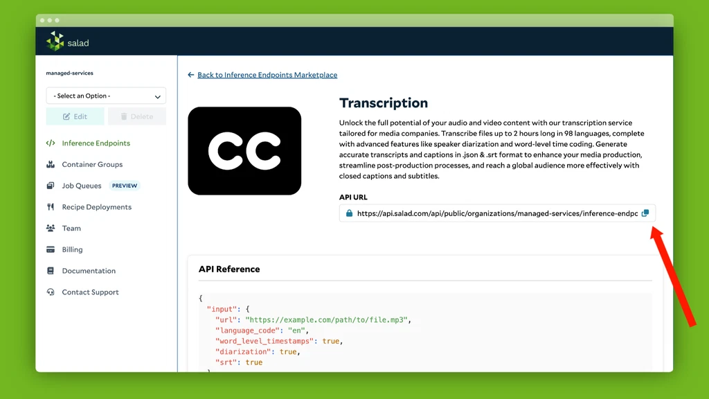 What sets Salad’s Transcription API apart from the rest is not just its cost-effectiveness and precision but also the innovative infrastructure it operates on. Powered by Salad’s container service, anyone can run advanced AI models effortlessly. This platform democratizes access to powerful computational resources, allowing users to run AI workloads without needing extensive technical expertise or significant financial investment. By integrating with this container service, users benefit from cutting-edge AI technology, all while maintaining a seamless and scalable experience. Salad’s Transcription API is breaking down barriers and enabling a new era of accessible, high-quality transcription and AI services.